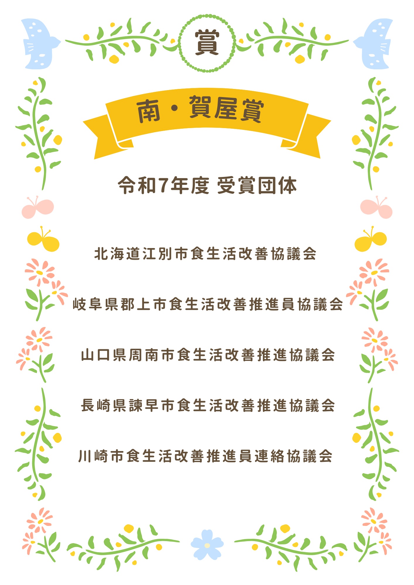 2025.09.10令和7年度 南賀屋賞 受賞団体が決定いたしました!